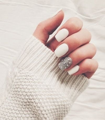маникюр с белым лаком и блестками