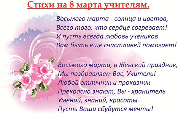 Pozdravleniya S 8 Marta Uchitelyam Pozhelaniya Uchitelnicam Na 8 Marta V Proze I Stihah Pozdravleniya Dlya Vospitatelej V Stihah K 8 Marta